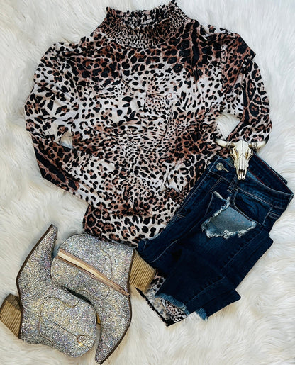 Embrace your wild side with this leopard mesh bodysuit! The smocked neck detail adds a chic and trendy touch, while the high-quality materials ensure all-day comfort. With its allover leopard print design, this bodysuit exudes confidence and style, making it a standout addition to any outfit.